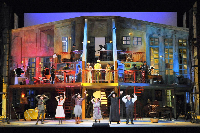モンテカルロ歌劇場との共同制作である。同歌劇場総監督のジャン=ルイ・グリンダによる演出は、映像を巧みに活用し、迫力満点のリアルな情景を