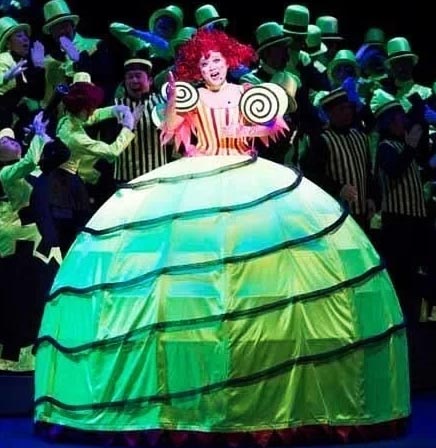 色鮮やかな衣装、台車付きの巨大なスカートをはいたユニークな機械人形の登場など