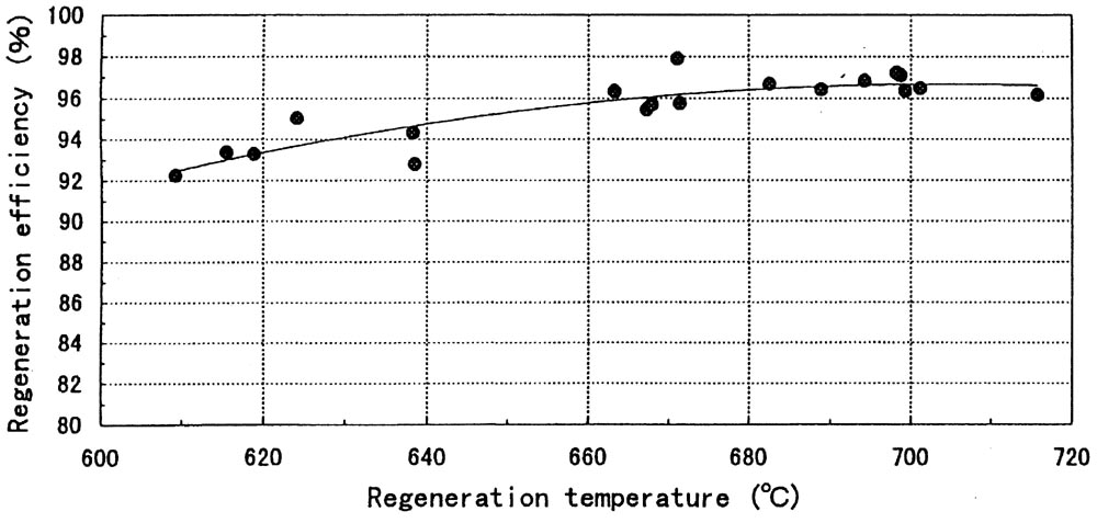 nearly the same desulfurization efficiency were attained at normal operation (inlet sulfur concentration : 400-1,400ppm). Desulfurization efficiency