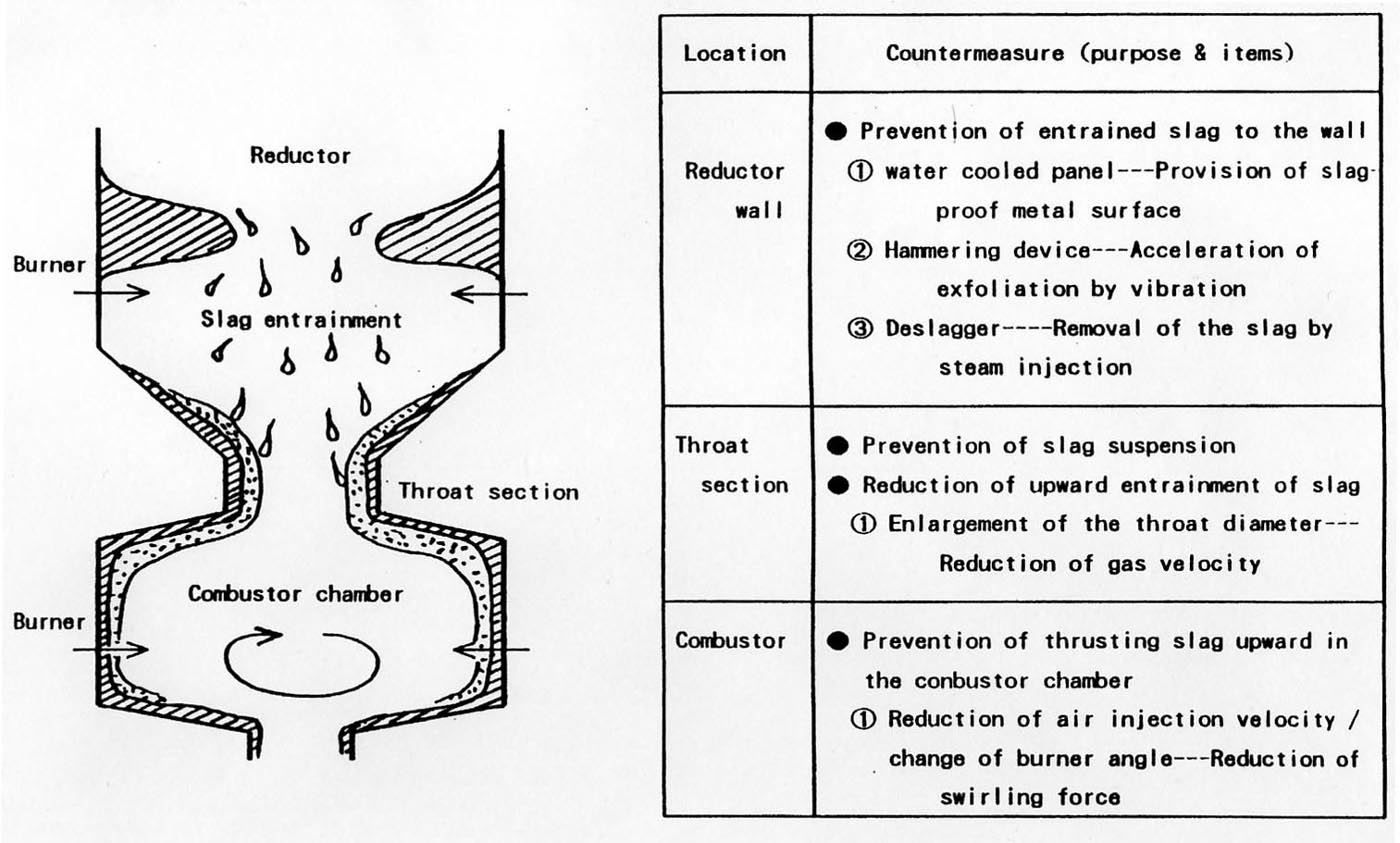 Accompanied by the elongation of the gasifier operation hours and the increase of gasifier load, slag deposition at the reductor section of