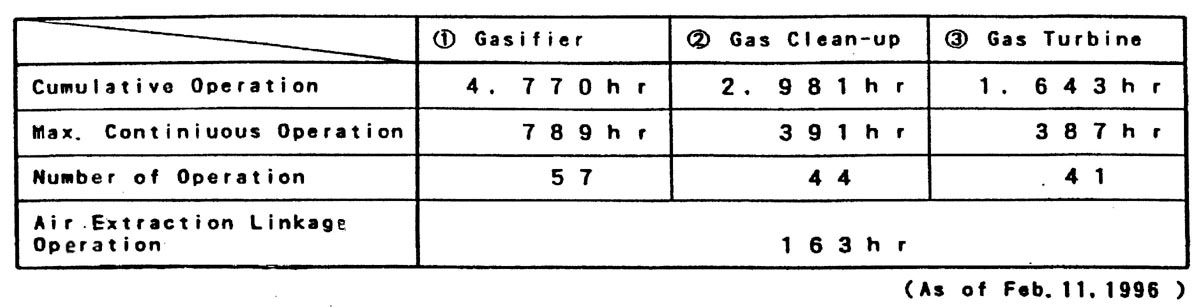 In June 1991 first coal gas was generated from Taiheiyo coal and in February 1992 product gas was introduced to the gas cleanup facility. In July 1992,
