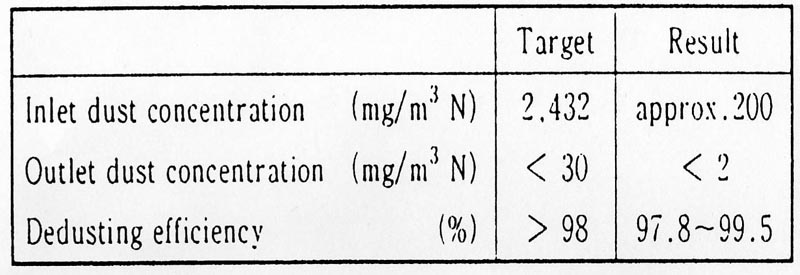 Granular filter having 4 layers( 2 layers~2 units) in the vessel is used as dedustor. Synthetic mulite granules is adopted as filter medium and