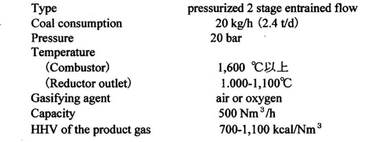 Although this 2t/d gasifier was originally used as the process development unit (PDU) for Nakoso IGCC pilot plant, it was also utilized for