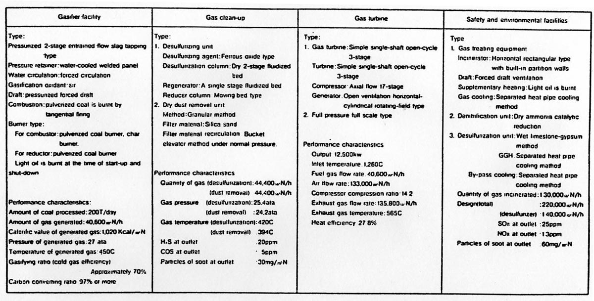 Main specification of the Nakoso IGCC pilot plant is shown in Table 6.