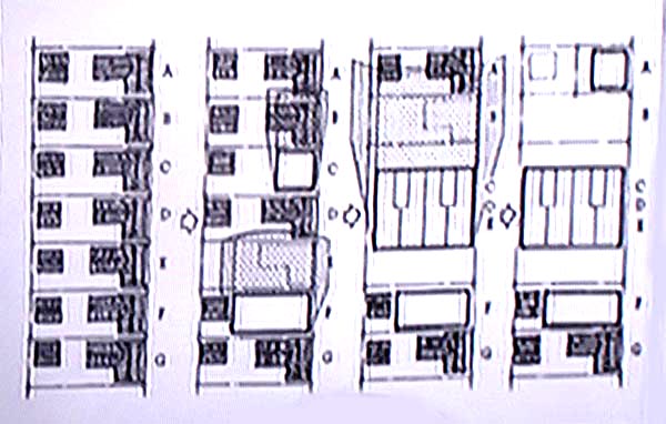 建物が立っていない中庭の存在が特徴的である。土地の人は、建替えに際してもこのルールをまもってきたが、外部から来てこのルールを知らな