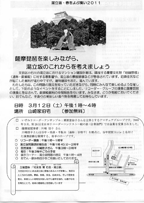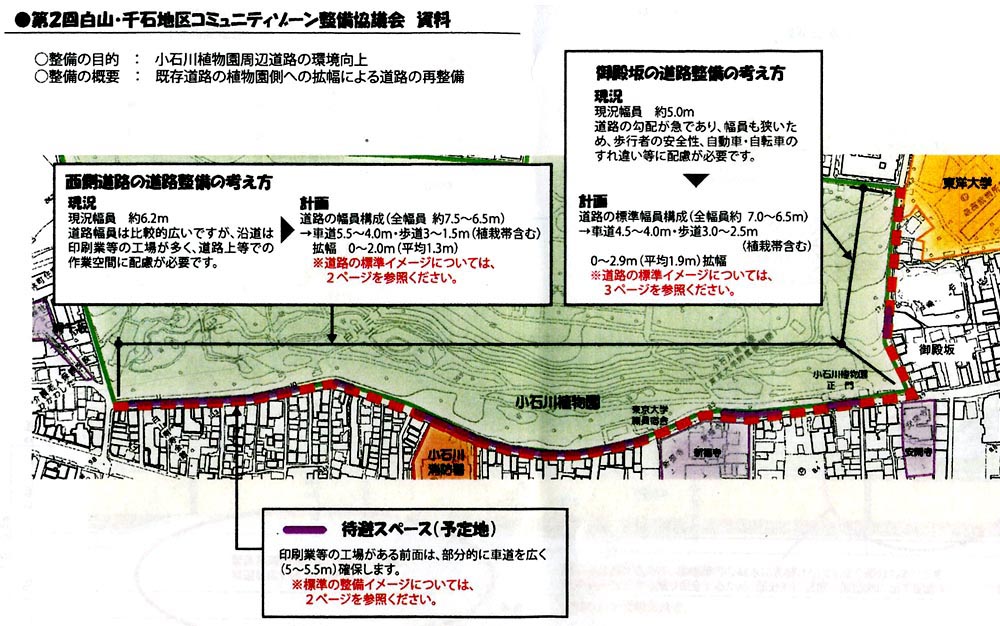 3月16日に播磨坂下の清掃事務所(旧村田学園)において小石川植物園周辺道路の説明会がある。
