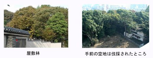 現在のマンション建設計画地の森には、ブナ、ユリノキ、プラタナス等の大木がある。
