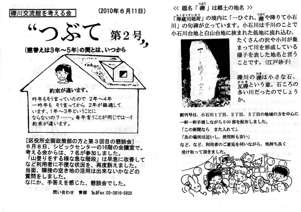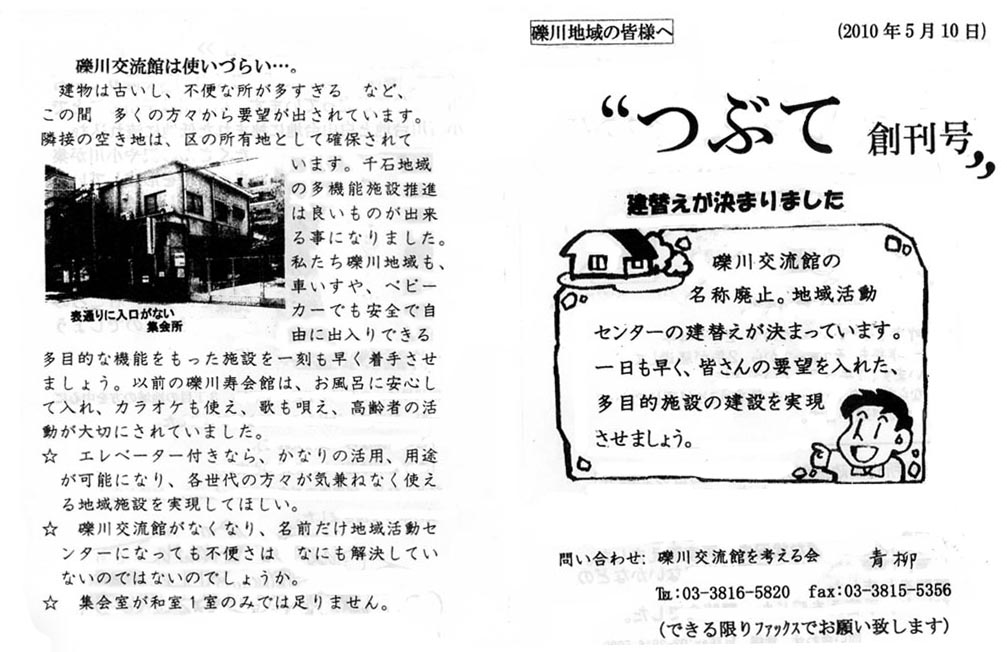 に現在の利用団体の掲示板設置も希望している。さらに、礫川交流館の問題点は、他の