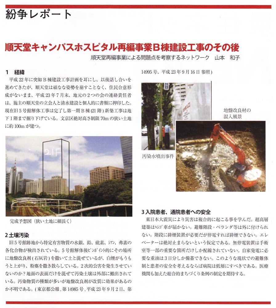 あり、一時使用が開放されるたびに舗装をするのだが、大型工事車両により、区道は頻繁に通行に支障が出ていることを順天堂自身が認識していない