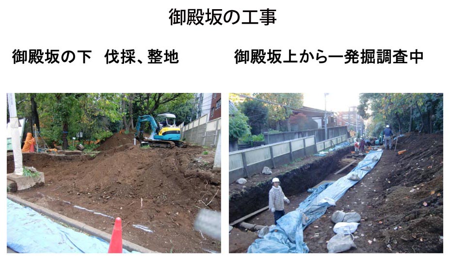 調印した。最初は、この図の下方(西側)から先に実施する予定であったが、塀のデザインが決まらないため、右方の御殿坂の方から実施することとなった。設計等