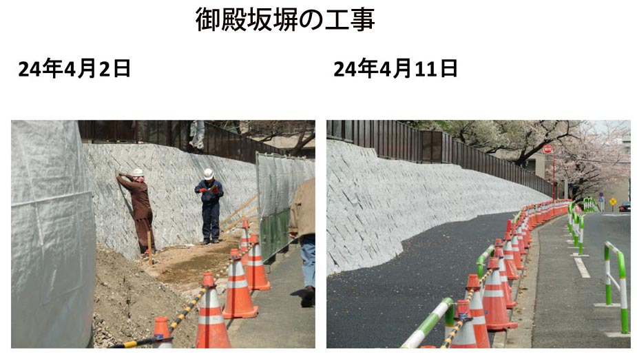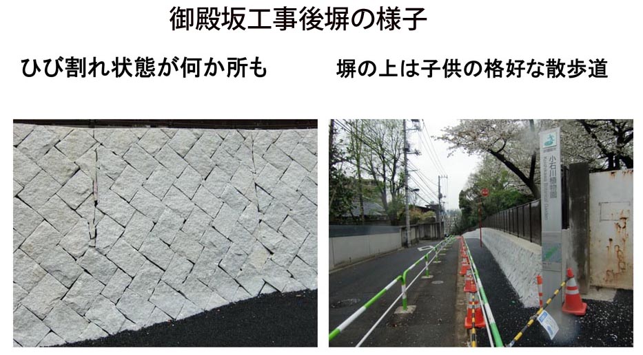 の準備に時間がかかり、実際の工事はH23年度から国交省から社会資本整備総合交付金をもらって文京区も負担して、塀を作ることとなった。実際にやりだしたのは、
