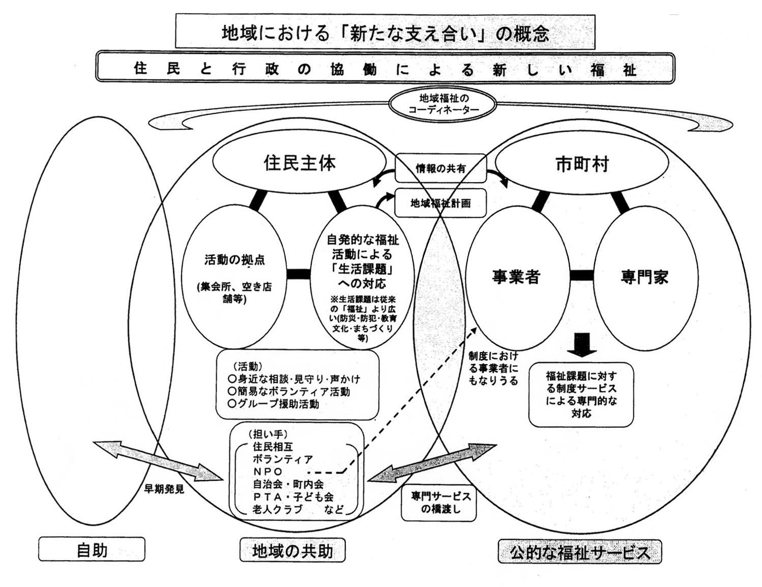 しかし、法律による生活保護、介護保険などのセーフティー・ネット業務は、行政本来の役割であるのに対し、文社協は行政対象の一歩手前の段階で、互いに支え合うことを目的としている。