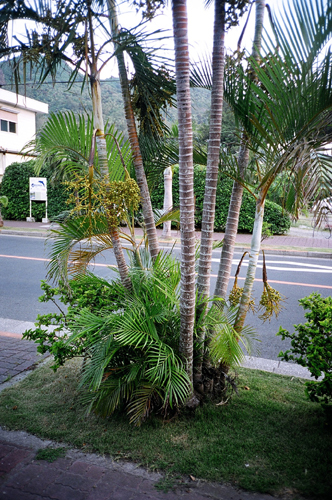 ヤシ科、トックリヤシ属の常緑高木の。成長が早く、樹高も6−8mになるので、街路樹としてもかなり広く用いられている。