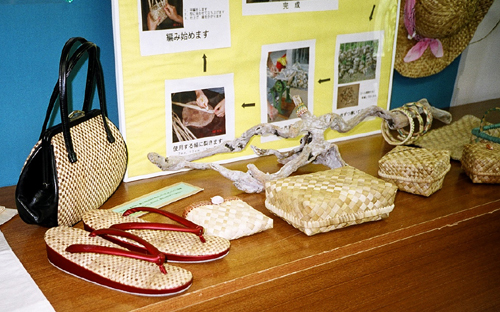 タコノキ科、タコノキ属の常緑高木。小笠原の固有種であるタコノキは、幹の下部から垂れる多数の支柱根がタコの足に似ていることから、 名付けられた。50個から100個の核果をつけたパインナップル形の集合果をつける。 果実の髄や種子を煮ると食用になり、種子から食用油をとることも出来るようである。長い葉は、乾燥させた後、民芸品の各種「タコノキ細工」に用いられている。琉球列島で多く見られるタコノキに酷似した アダンもタコノキ科に属する。