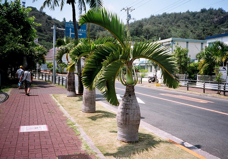 ヤシ科、トックリヤシ属の常緑低木。幹の基部が大きく膨らみ、上に行くにつれてほそくなり、文字通り徳利のような形をしており、ユーモラスであるが、樹高が3−4mどまりであるため、街路樹としてはあまり多く利用はされていない。