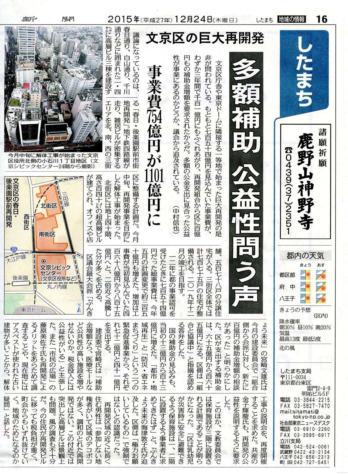 東京新聞 2015年12月25日 朝刊の記事